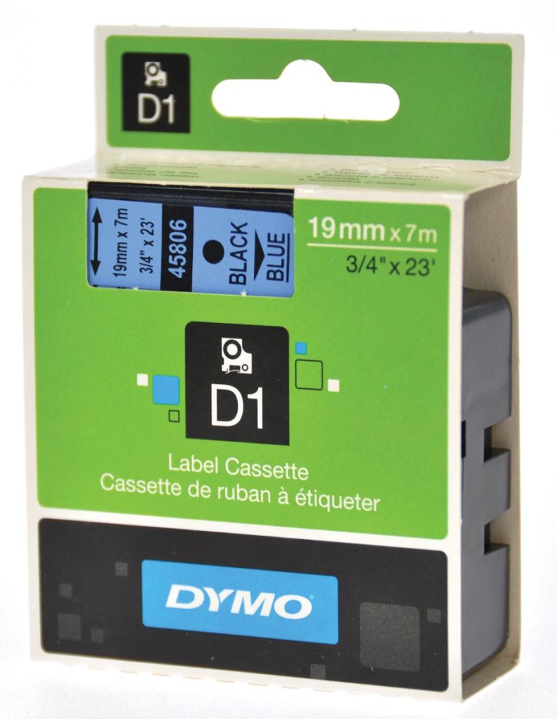 Dymo D1 tape 19 mm x 7 m, zwart op blauw