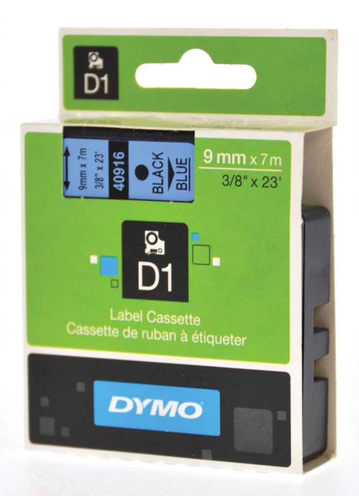Dymo D1 tape 9 mm x 7 m, zwart op blauw
