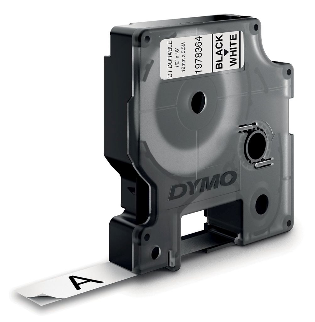 Dymo duurzame D1 tape 12 mm x 5 m, zwart op wit