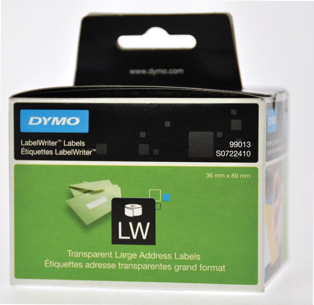 Dymo etiketten op rol LabelWriter, transparant, 36x89mm