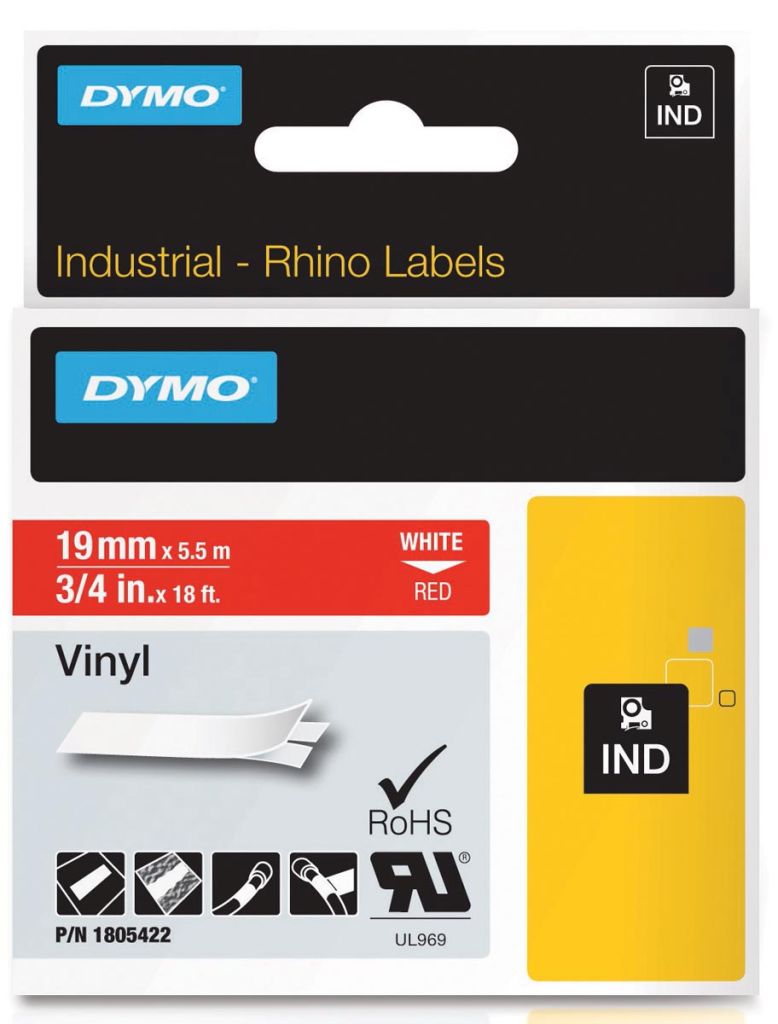 Dymo RHINO vinyltape 19 mm, wit op rood