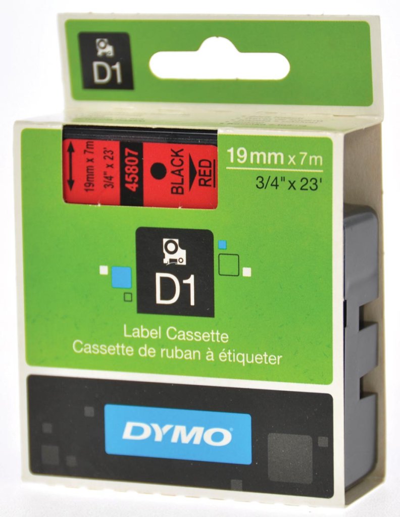 Dymo Tape D1 19 mm x 7m zwart op rood