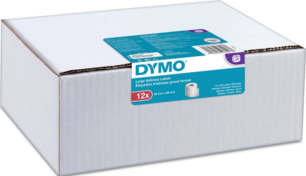 Dymo Value Pack: etiketten LabelWriter ft 89 x 36 mm, wit, doos van 12 x 260 etiketten