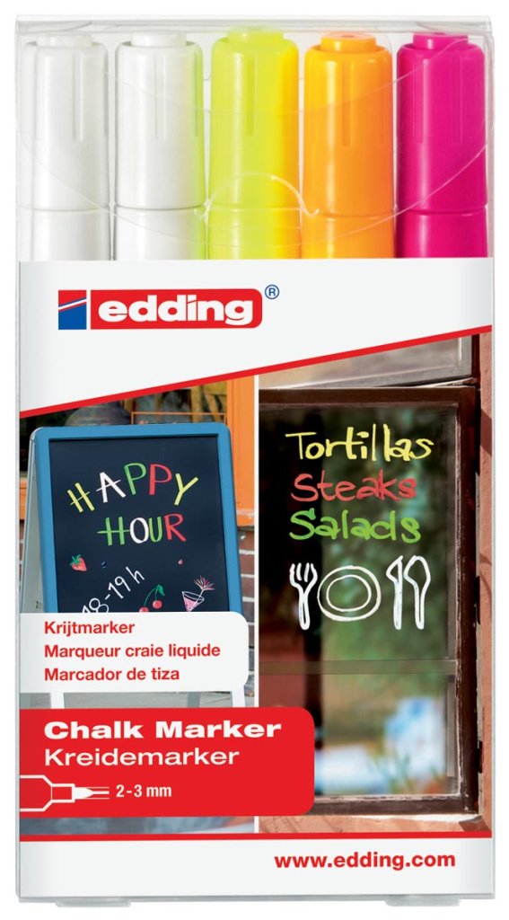 Edding krijtmarker e-4095 ronde punt etui 5 stuks assorti