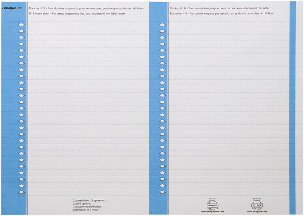 - Type 9 is geschikt voor alle Elba hangmappen (AZV, TUB en Ultimate kunststof): 31 etiketten per vel