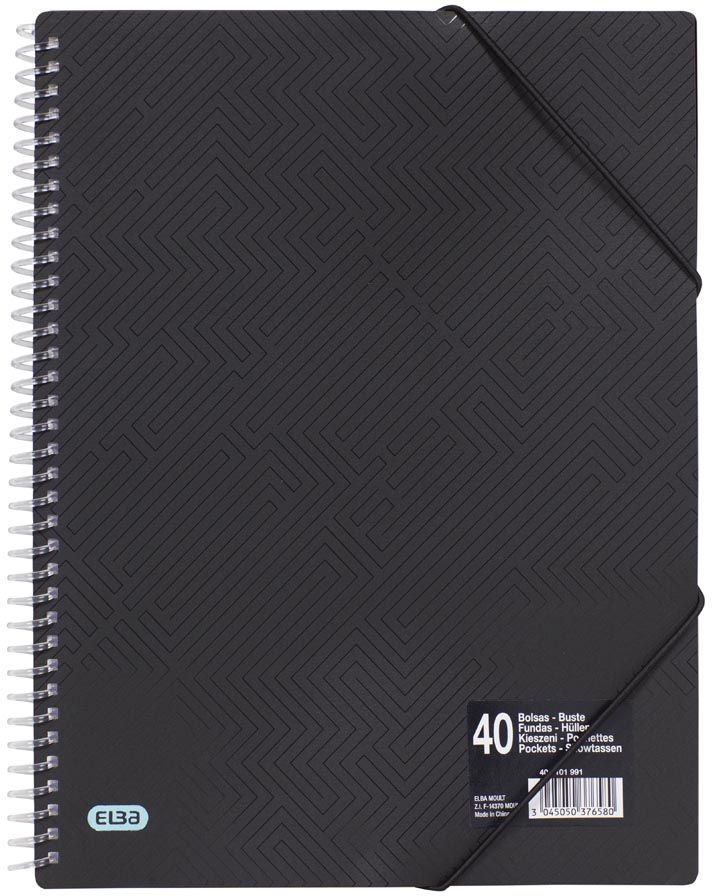 Elba Urban showalbum met spiraal, voor ft A4, 40 tassen, met elastieksluiting, zwart
