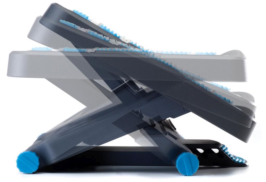 Geef vermoeide voeten meer energie met de Fellowes Energizer voetensteun. De innovatieve massagestructuur van rubber biedt een welkome verlichting van de dagelijkse stress wanneer u aan uw bureau werkt. Werken zonder de juiste ondersteuning kan ongemak en een slechte houding veroorzaken. Deze voetensteun helpt bij een goede houding, doorbloeding en een verhoogd comfort door het verlichten van druk op de onderrug. De scharende beweging verstelt het platform in hoogtes van 100mm, 135mm of 165 mm.