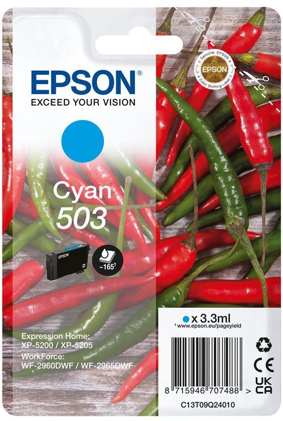 Epson inktcartridge 503, 165 pagina's, OEM C13T09Q24010, cyaan