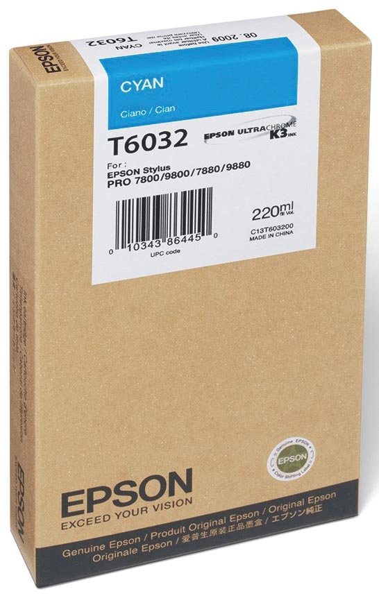 Epson Fotocartridge T603200 cyaan 220ml Epson Stylus Pro 7800, 9800, 9880,Stylus Pro 7800 Xrite Eye One, Stylus Pro 7880, Stylus Pro 9800 Xrite Eye One