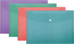 - Voor ft A4 (23,5 x 32,2 cm) Uit PP Met drukknopsluiting Capaciteit: 120 A4 vel (80 g/m²) Copysafe en zuurvrij pak van 4 stuks, geassorteerde kleuren