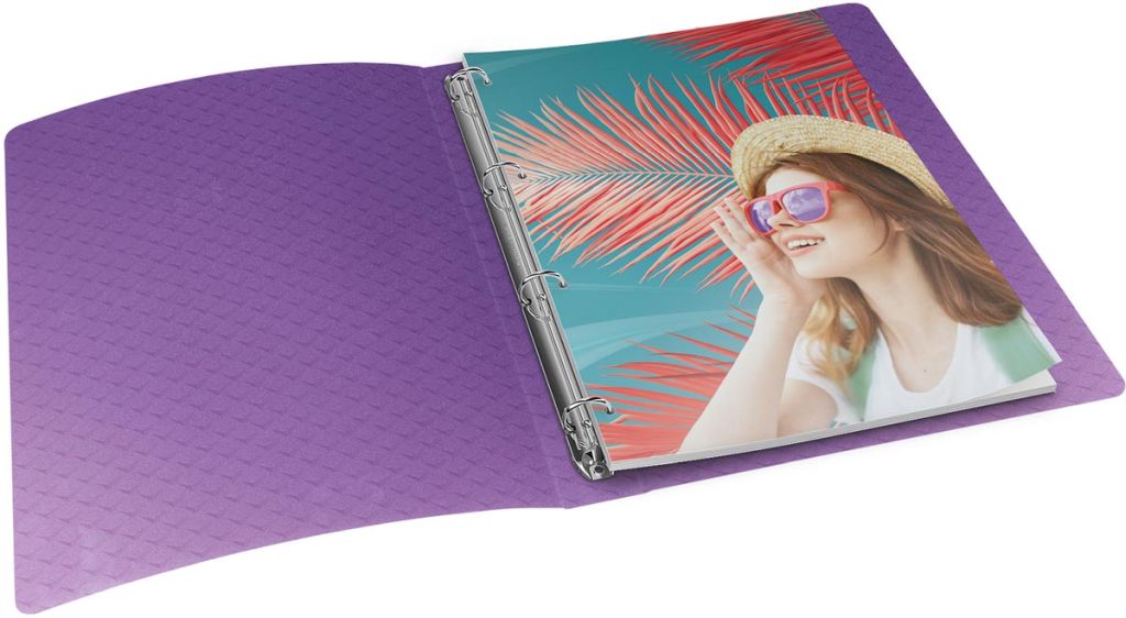 - Voor ft A4 (24,8 x 31,4 cm) Rug van 2,5 mm Uit PP met motief Met ronde ringen Met soepele kaft Met rugetiket Capaciteit: 140 vel lavendel, met 4 ringen