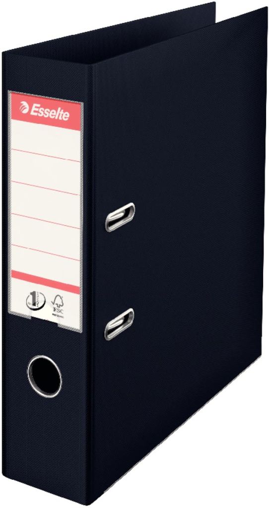 - Voor ft A4 Sterk karton overtrokken met PP-folie Ergonomische hendel Met metalen sleuven, randbeschermers, grijpring en etikethouder FSC Mix gecertificeerd rug van 7,5 cm, zwart, pak van 5 stuks