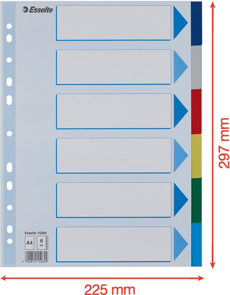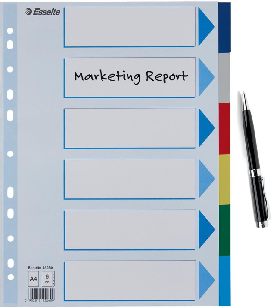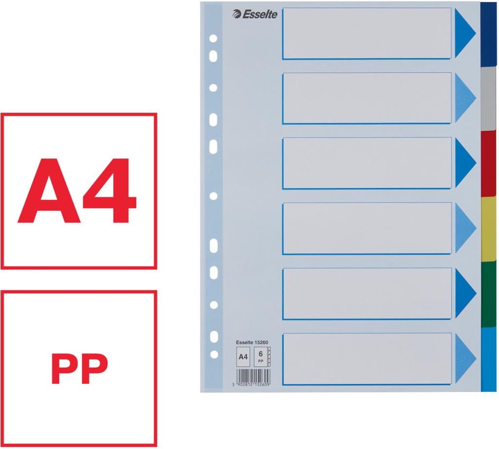 Esselte tabblad pp - A4 - 6 stuks