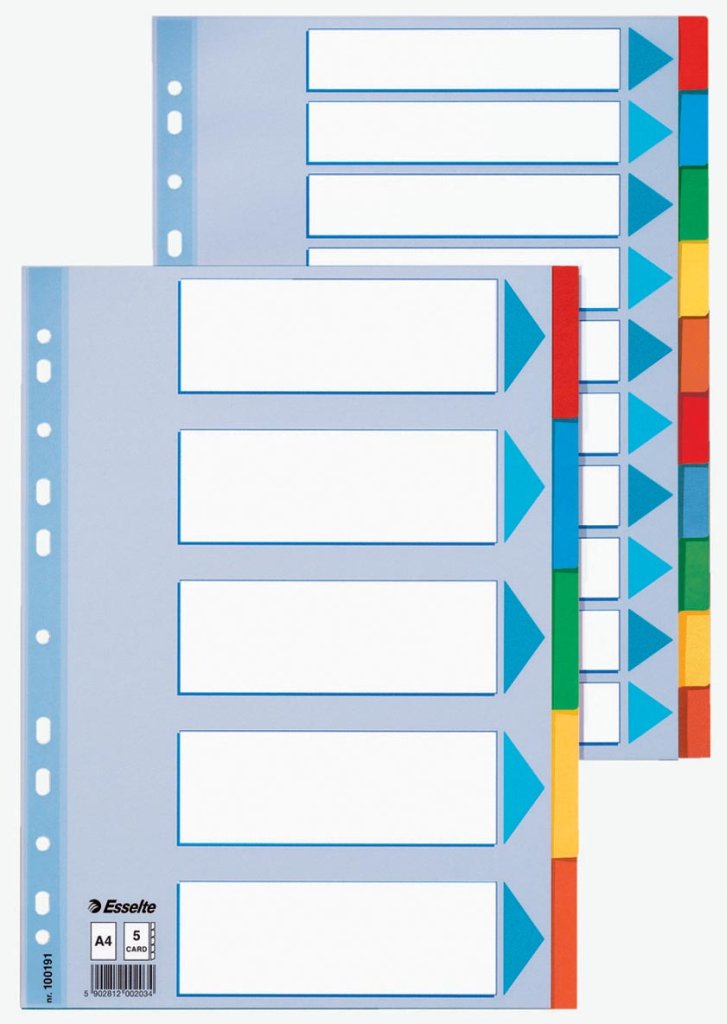 Esselte tabbladen A4 karton 10 tabs21 perforatiegaten