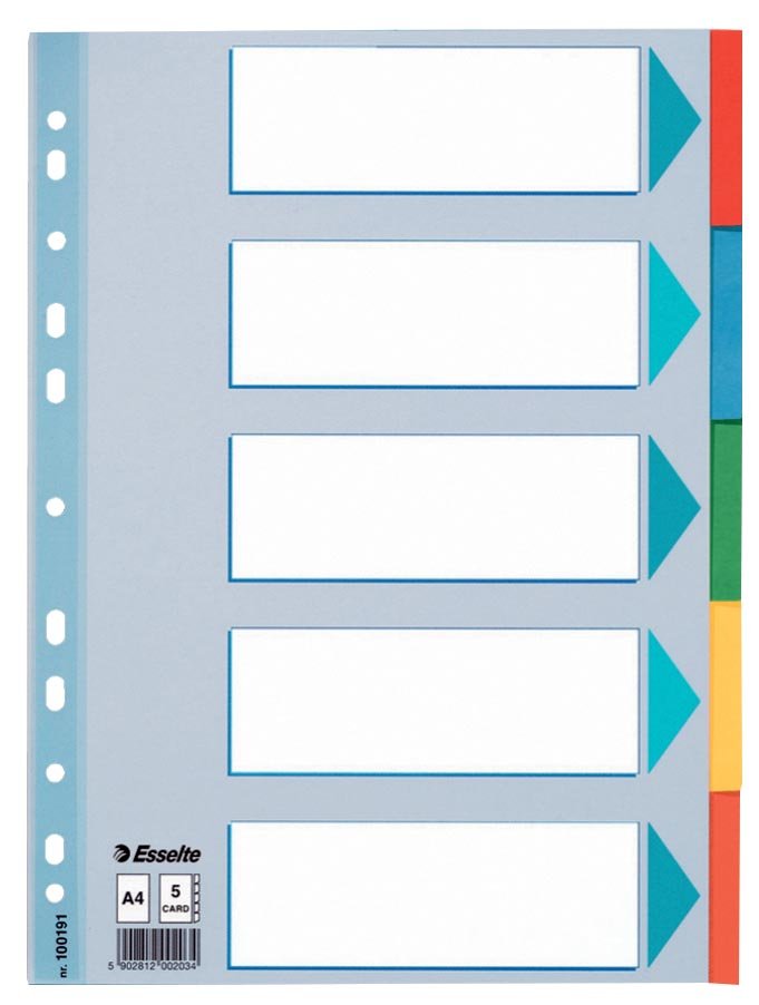 Esselte tabbladen voor A4, karton, 5 tabs, geassorteerde kleuren