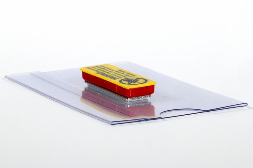 - Met duimgreep voor het gemakkelijk insteken van het naamkaartje Voorzien van een magneet voor een bevestiging aan kleding zonder beschadiging ft 75 x 40 mm (b x h), PVC van 0,35 mm dik