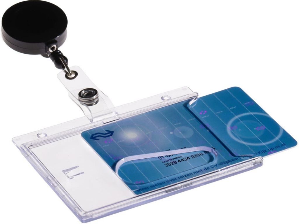 Europel badgehouder met afroller, ft 54 x 85 mm, gesloten