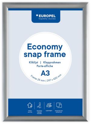 Europel clicklijst Economy, lijst 25 mm, ft A3, zilver
