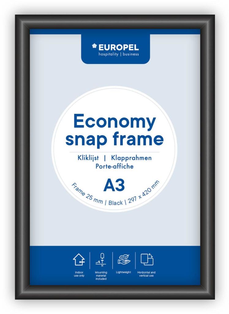 Europel clicklijst Economy, lijst 25 mm, ft A3, zwart