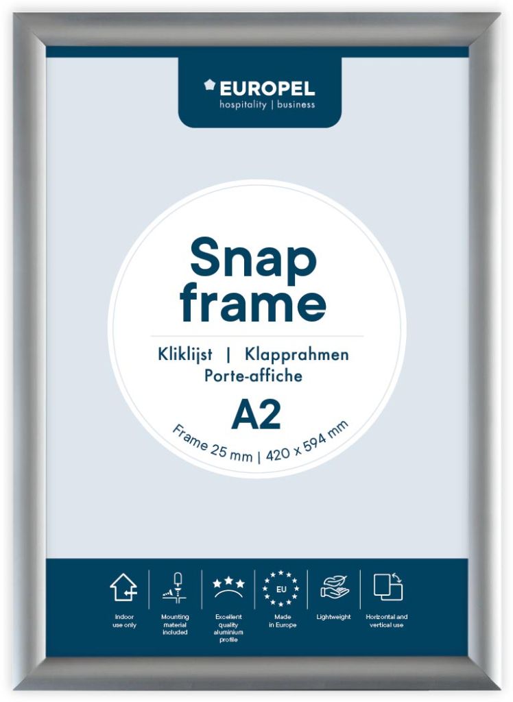 Europel clicklijst, lijst 25mm A2, zilverkleurig posterframe