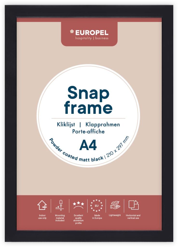 Europel clicklijst, lijst 25mm A4, mat zwart posterframe