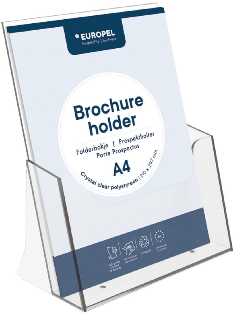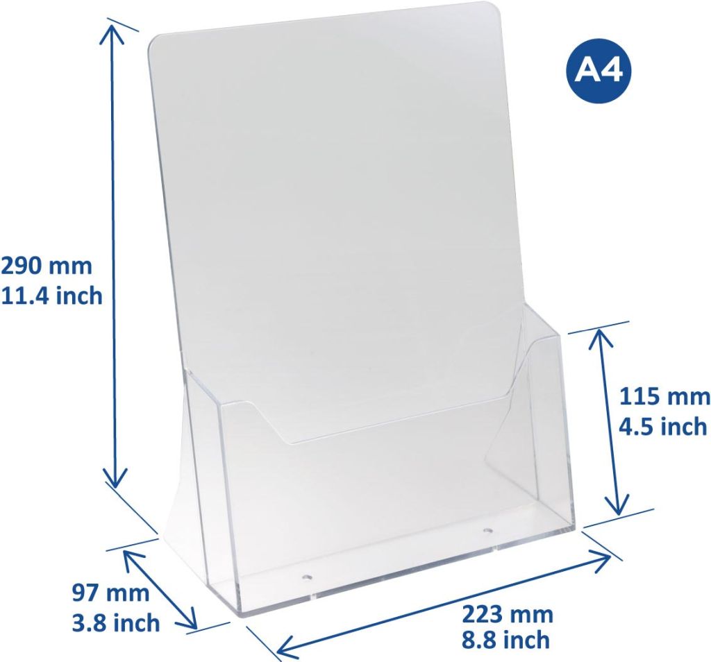 - Voor glasheldere presentatie van folders, catalogi en prijskaarten Stevig en glashelder hoogwaardig kunststof (2mm) Capaciteit 3,5 cm ft A4