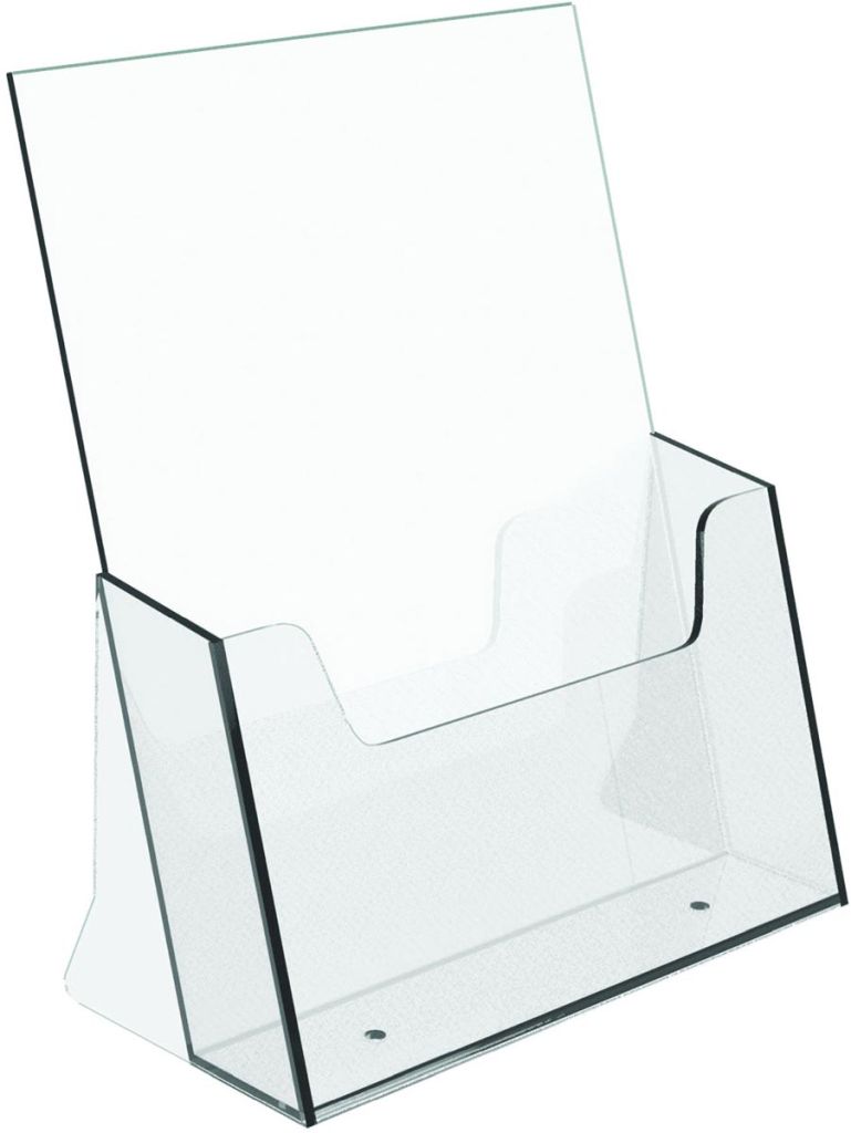 - Voor glasheldere presentatie van folders, catalogi en prijskaarten Stevig en glashelder hoogwaardig kunststof (2mm) Capaciteit 3,5 cm ft A5, buitenft: 16 x 4,3 x 22 cm, binnenft: 15,5 x 3,5 x 20 cm