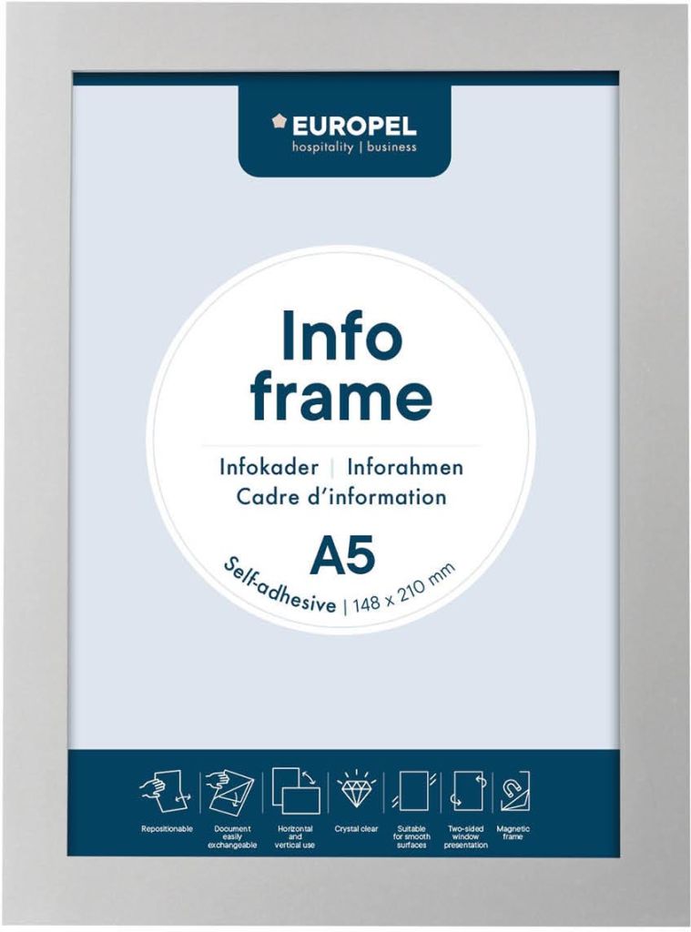 Europel zelfklevend kader ft A5, zilver, pak van 2 stuks