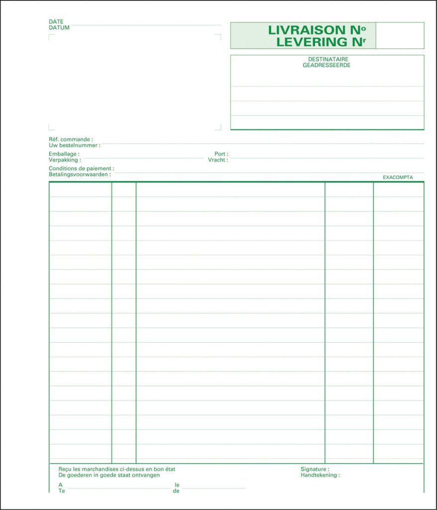 - Boek met afleveringsbonnen met behoud van een kopie