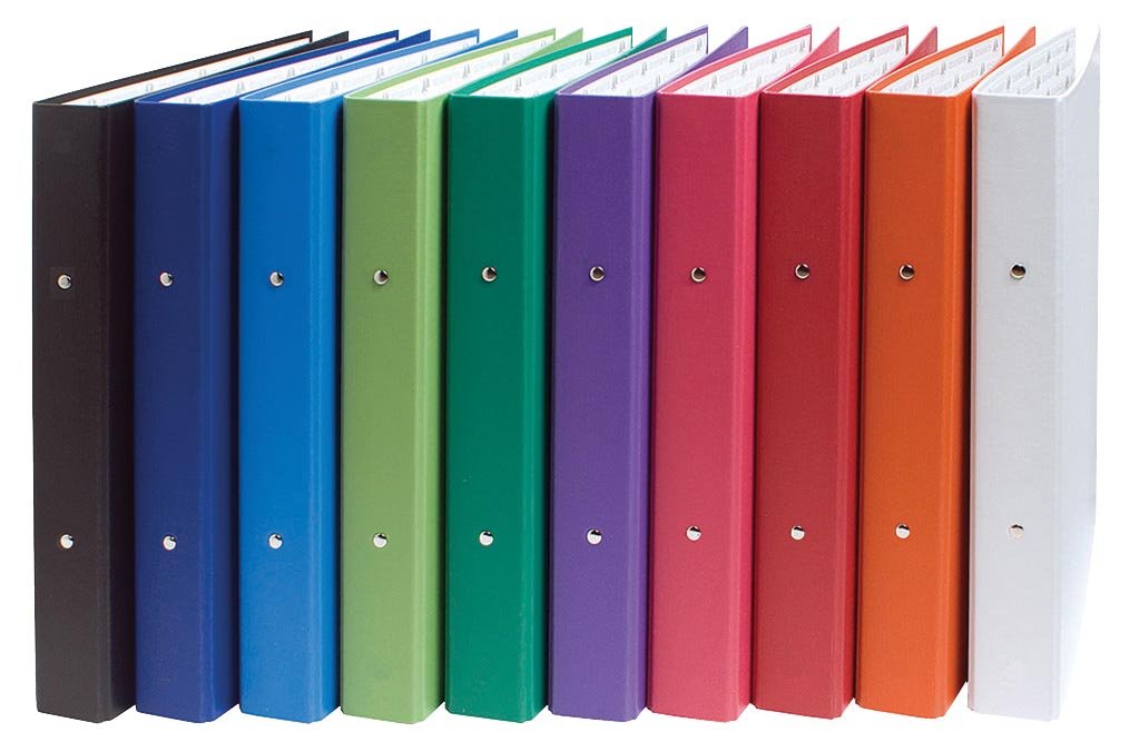 - geassorteerde kleuren: wit, oranje, roze, rood, paars, lichtgroen, groen, blauw, donkerblauw en zwart, 2 mappen per kleur