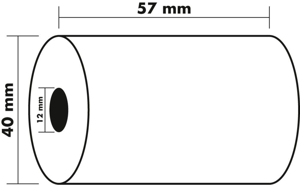 - breedte 57 mm x lengte 18 m x diameter 40 mm, asgat: 12 mm, voor bankterminals, BPA-vrij, uit gecertifieerd FSC-papier
