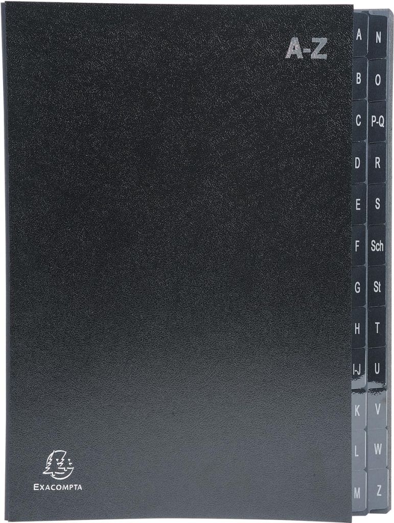 - met 24 vakken met tabs A-Z, zwart