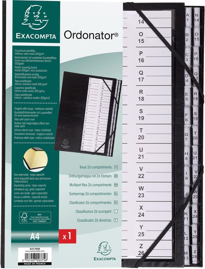 Exacompta sorteermap Ordonator met harde kaft, bedrukte alfabetische ruiters, 26 vakken, zwart