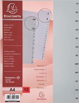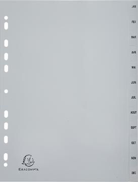 Exacompta tabbladen maandelijks A4, uit PP, 12 tabs, jan-dec, grijs, Frans