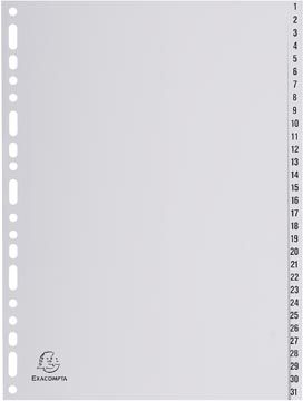 Exacompta tabbladen numeriek voor ft A4, uit PP, 31 tabs, grijs
