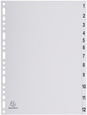 Exacompta tabbladen numeriek voor ft A4, uit PP, grijs, 12 tabs