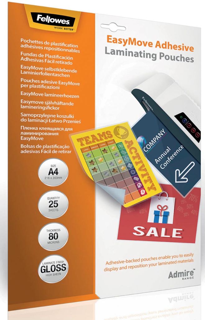 - 2 x 80 micron (160 micron) Pak van 25 stuks EasyDisplay zelfklevende lamineerhoezen - perfect om makkelijk documenten te bevestigen aan de wand, ft A4