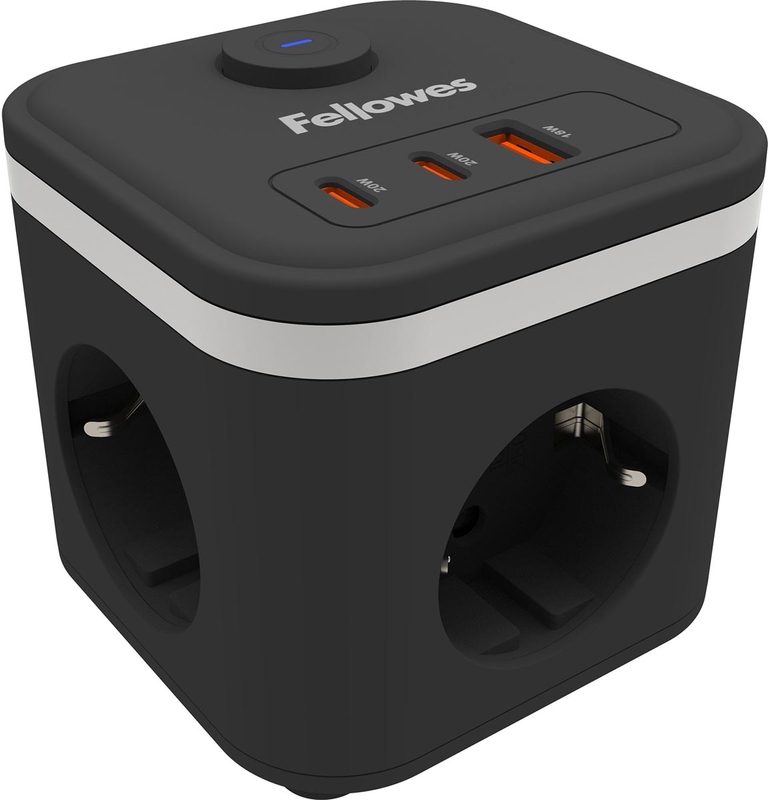 Fellowes contactdoos Power Cube, 3 stopcontacten + 1 x USB-A + 2 x USB-C, zwart, voor Nederland