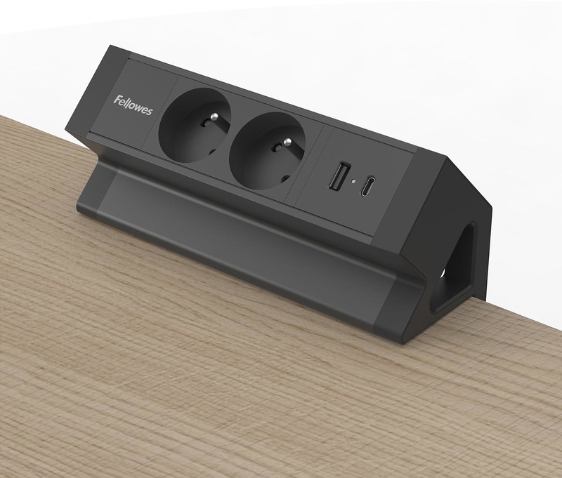 Fellowes contactdoos Power Desk 2, 2 stopcontacten + 1 x USB-A + 1 x USB-C, zwart, voor België