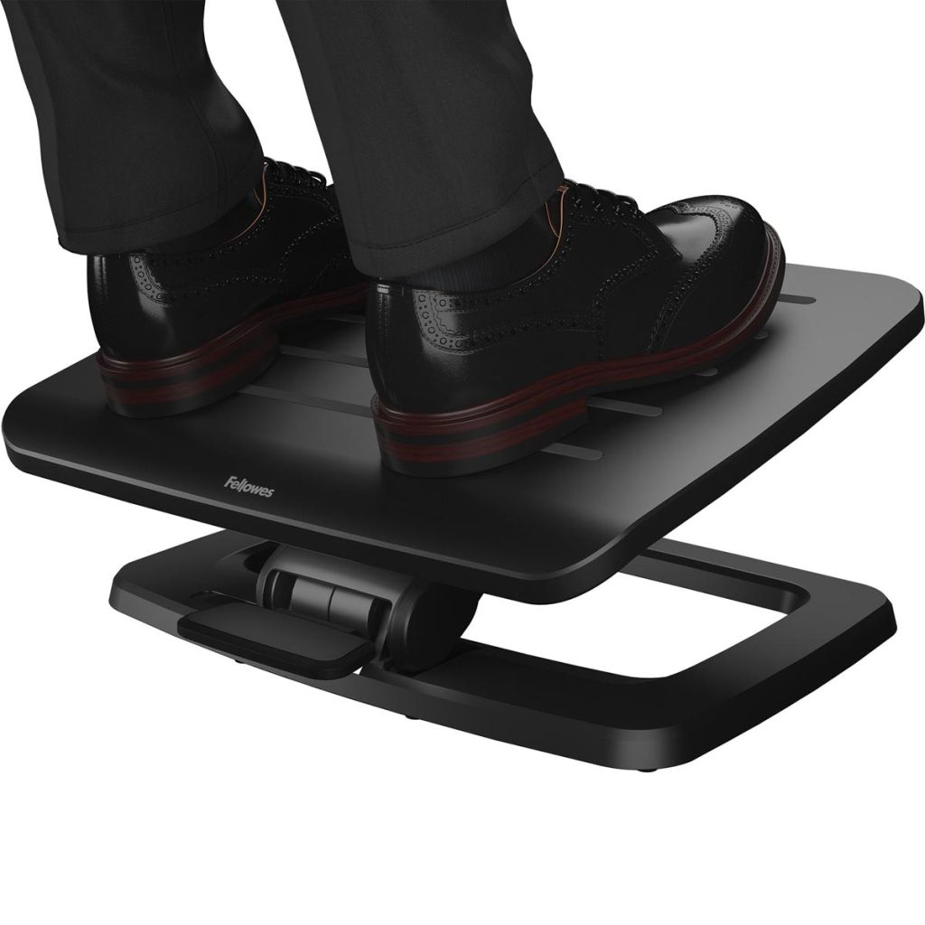 - Ondersteunt uw voeten en stimuleert beweging om te zorgen voor een goede ergonomische houding, zodat u de hele dag comfortabel zit