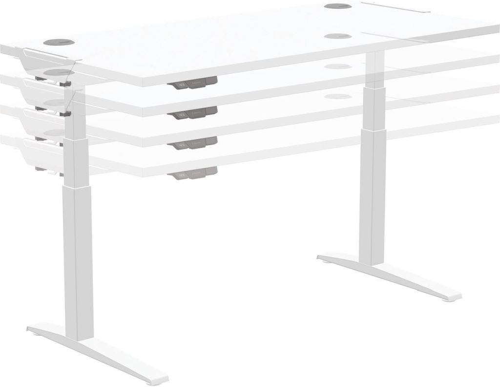 - Uit gepoedercoat staal Elektrisch verstelbare structuur voor zit/sta bureau In hoogte verstelbaar: 640 - 1257 mm Met programmeerbare hoogte-instelling Voor tafelbladen van 1219 mm tot 1829 mm (tafelblad niet meegeleverd) Max