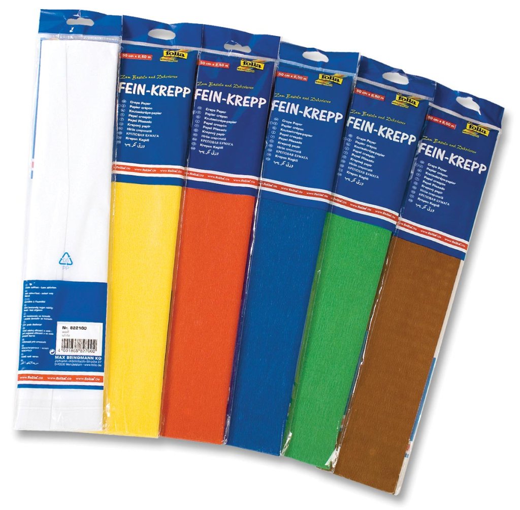 - Papier van 32 g/m² Ft 250 x 50 cm In een ophangetui pak van 10 stuks in geassorteerde kleuren: wit, geel, licht oranje, lichtblauw, blauw, rood, lichtgroen, donkergroen, roze en bruin