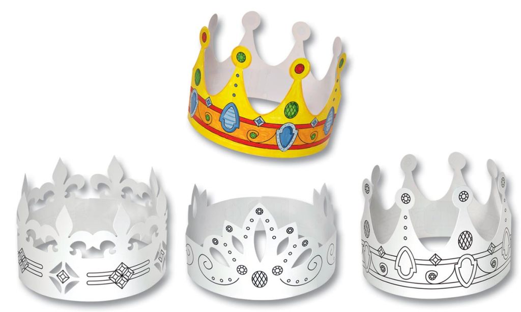 - Kartonnen kinderkroon om zelf in te kleuren en te decoreren
