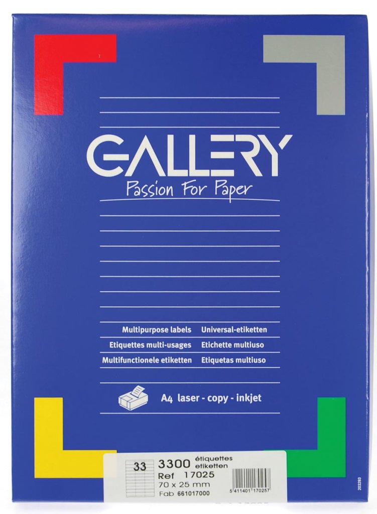 Gallery etiketten 70 x 25 mm, 33 per blad, wit, 100 vel