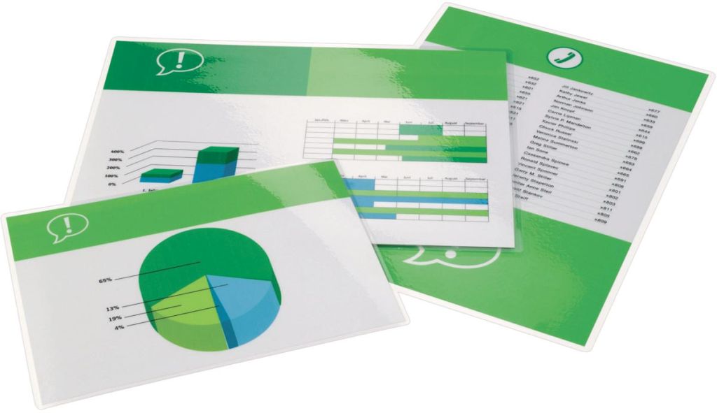 - De hoogglans Document lamineerhoezen zijn verkrijgbaar in vele diktes en formaten tot A2 en ze zijn bestemd voor het beschermen van veelgebruikte documenten of berichten