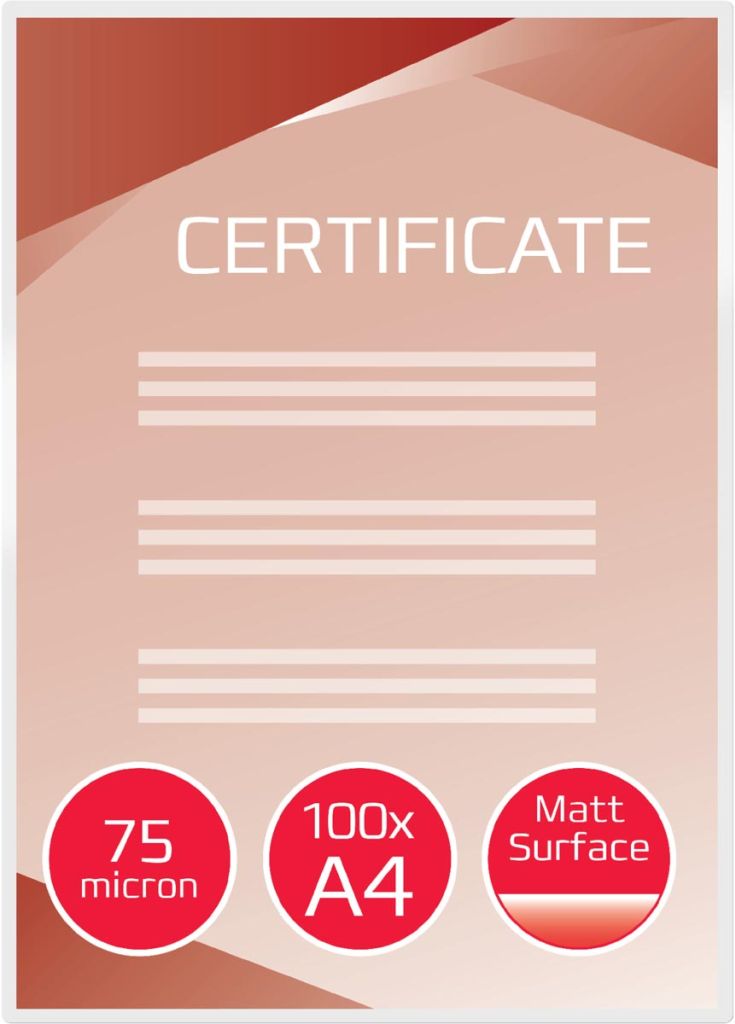 - Niet-reflecterende matte afwerking Compleet waterbestendig Geschikt voor gebruik in lamineermachines van elk merk ft A4, 150 micron (2 x 75 micron), mat/glanzend, pak van 100 stuks