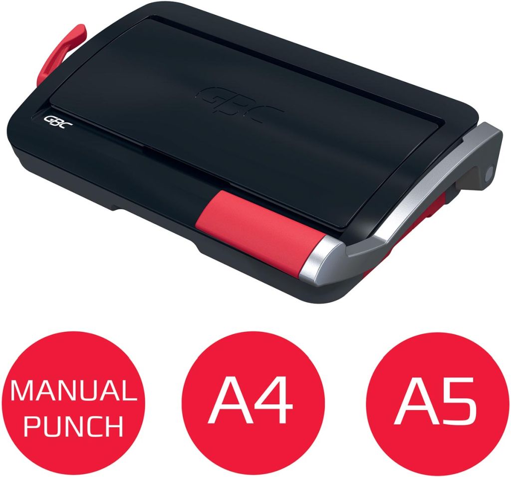 - Manuele inbindmachine Ponscapaciteit: 12 vel (80 g/m²) Bindcapaciteit: 195 vel (met bindrug 19 mm) Voor 21-rings plastic bindruggen Geschikt voor ft A3 (langs de smalle kant), A4 en A5 Met handgreep voor moeiteloze en soepele inbindervaring Aanpassing van de zijmarge voor nauwkeurige uitlijning Vaste margediepte voor consistente en hoogwaardige inbinding Rubberen antislip voetjes voor stabiele en veilige plaatsing Handig opvangbakje en een opbergvak voor accessoires Kleur: zwart, rood en zilver