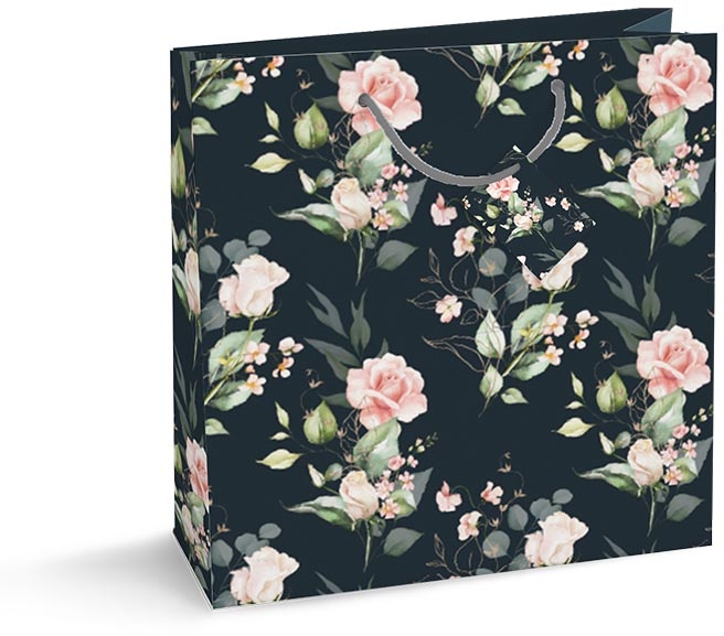- Papier van 220 g/m² Motief: zwarte zak met roze rozen Met beschrijfbaar label ft 6 x 15 x 15 cm, S