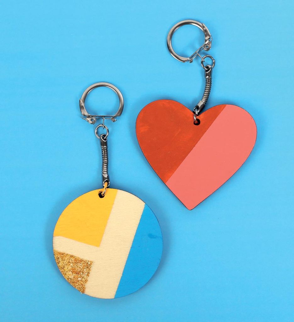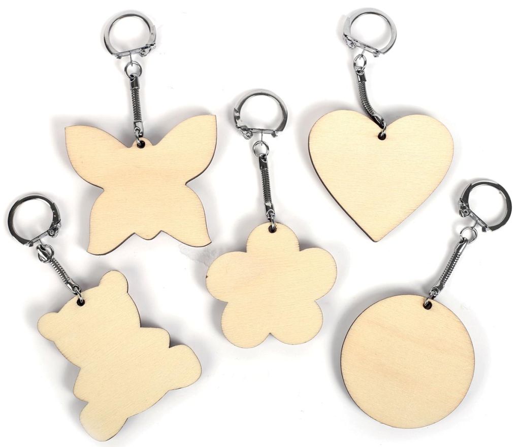 Graine Créative Sleutelhanger hout, assortiment vormen, diameter 55 mm, zakje van 10 stuks
