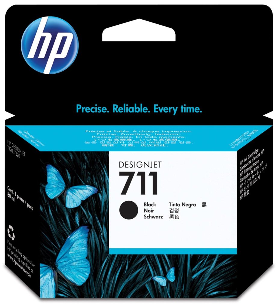 HP 711 zwarte inktcartridge, 80 ml, biedt consistente, accurate resultaten. U produceert snel drogende, vlekbestendige prints met scherpe, nauwkeurige lijnen. Originele HP inkt is samen met uw printer ontworpen en getest om consistente resultaten te waarborgen.
